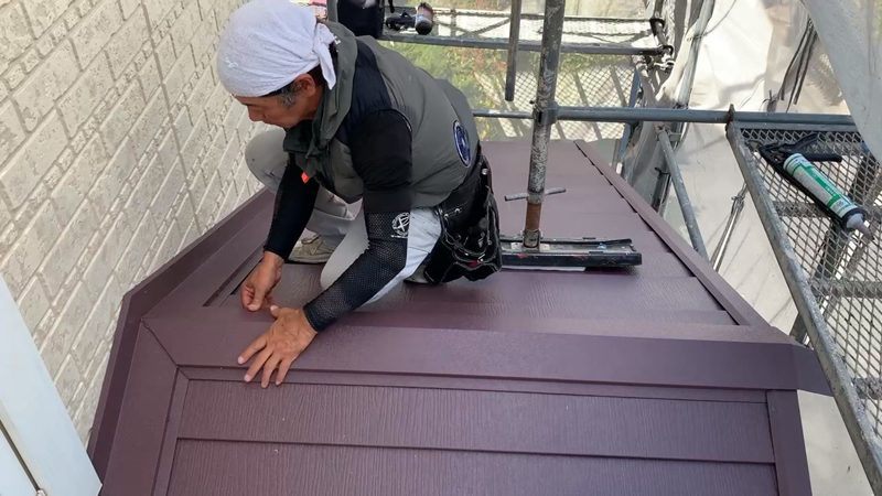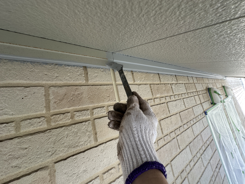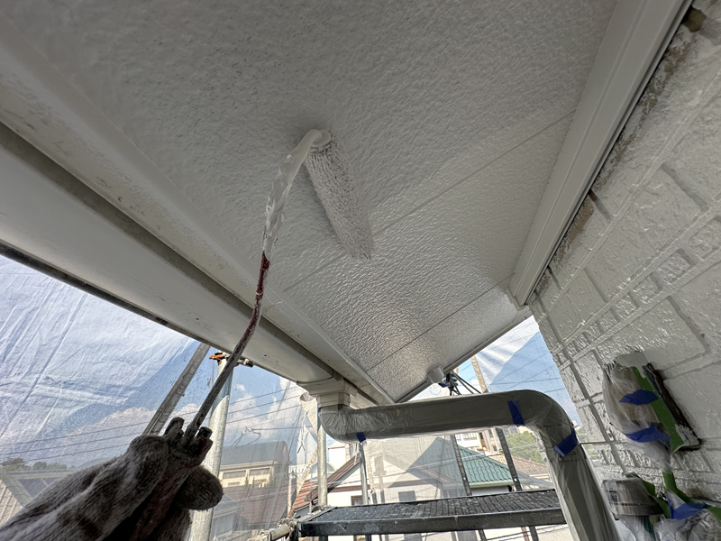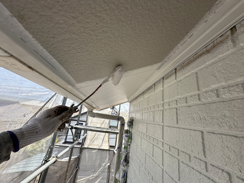 住まいを守る庇を、心を込めて塗装しています。