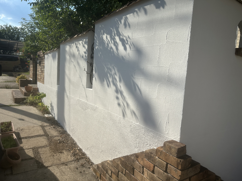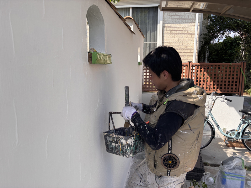 塀の傷みを整え、きれいに仕上げるための下地補修です。