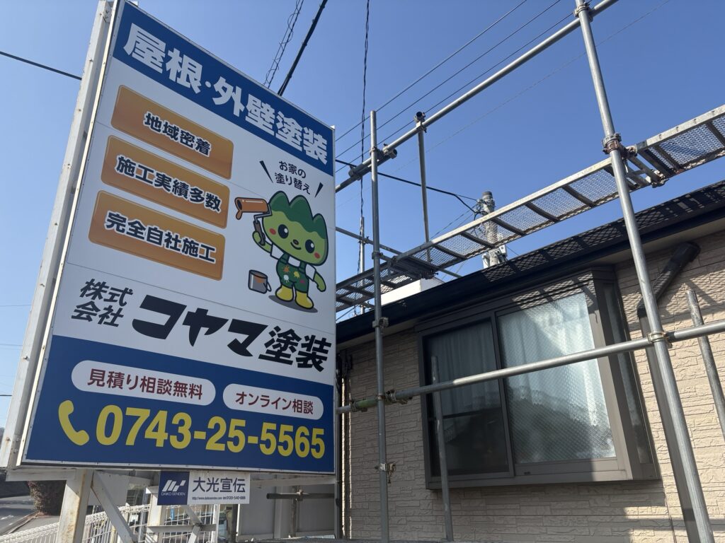 生駒インターに看板を設置させていただいている方から塗装のご依頼があり、本日から工事が始まりました。😊